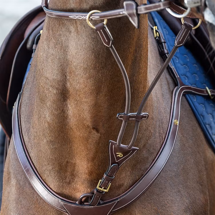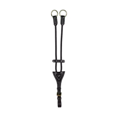 Kort elastisk martingal, justerbar. Tillverkad i fint spanskt läder med mässingsspännen och vit mönstersöm.