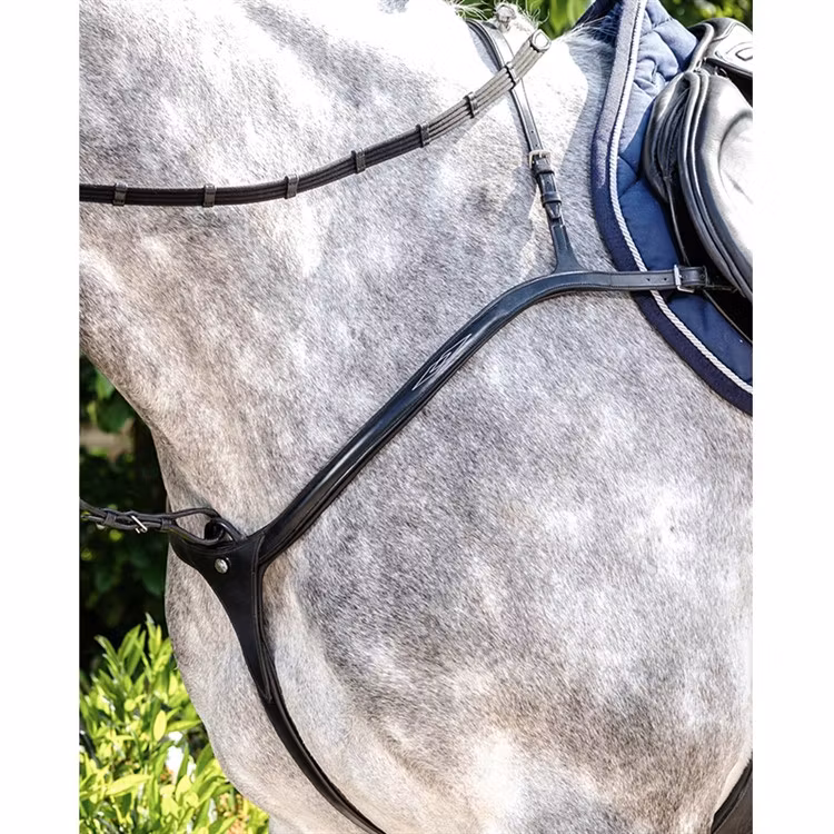 Standard martingal (EVO) ingår. Supersmart snabbspänne på martingalen, så man inte behöver knäppa upp tyglarna för att trä igenom ringen, utan bara hakar på ringen på tyglarna!