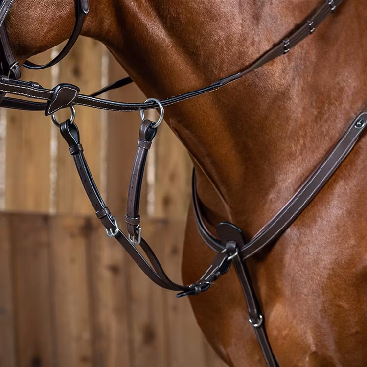 Kort justerbar martingal till brösta. Tillverkad i buffaloläder med silverspännen