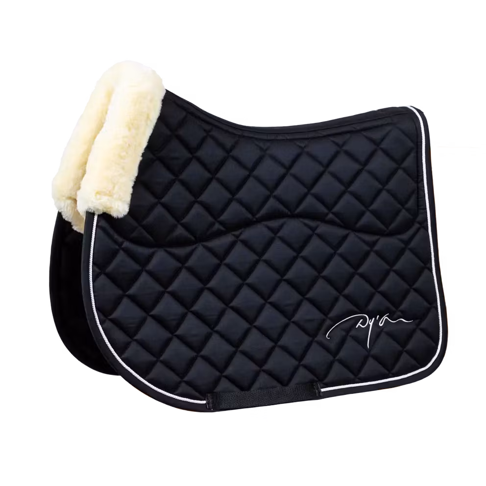 Sadelunderlaget har inga irriterande remmar bara en nylonrem för gjorden. Dy'on-logotypen på varje sida av sadelunderlaget ger utrymme för att brodera din egen logotyp om du vill.