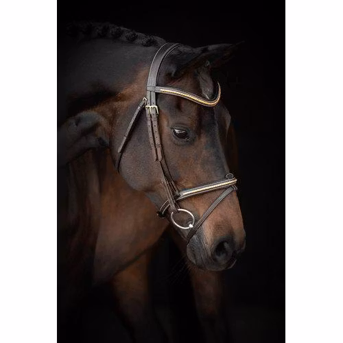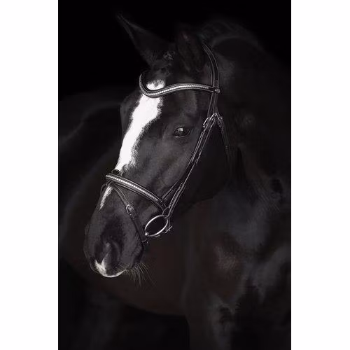 Träns Lippo Supreme Nexon Aachenträns med kombinerad nosgrimma i mjukt amerikanskt kvalitetsläder. Anatomiskt format nackstycke. Dekorerat med clincher på svängt pannband och nosgrimma som är mjukt fodrade. Clincher i äkta mässing/Silverfärgad clincher. Rostfria guld/silverfärgade söljor. Avtagbar nosrem och fäste. Storlek: Cob, full, x-full Pannband Lippo Supreme Nexon Rakt mjukt fodrat pannband i amerikanskt kvalitetsläder. Dekorerat med clincher i äkta mässing/Silverfärgad clincher. Storlek: Cob, full, x-full