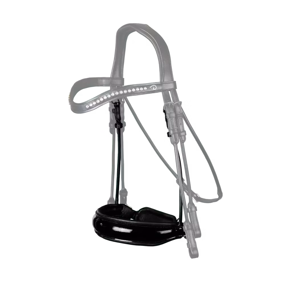 Matt stor vev nosgrimma Smidig anatomisk 38 mm bred nosgrimma finns tillgänglig i matt läder, lack eller lack med vitt foder. Drag-back-stängning monterad på en vadderad skyddande baksida