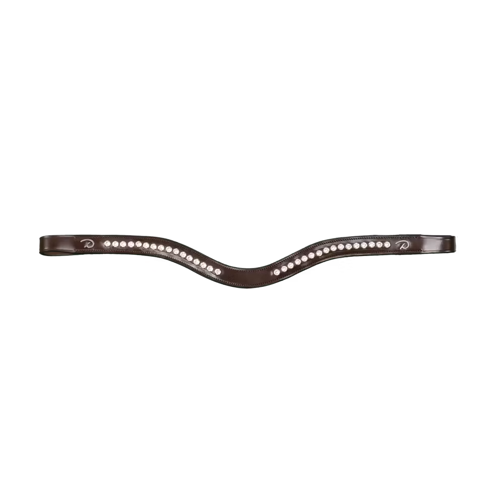 The Browband är en del av New English-kollektionen, vilket betyder att färgen på sömmen matchar tränsets färg. Spännena är i rostfritt stål. Det halva Swarovski V-formade pannbandet matchar varje (dubbel) träns från New English-kollektionen.