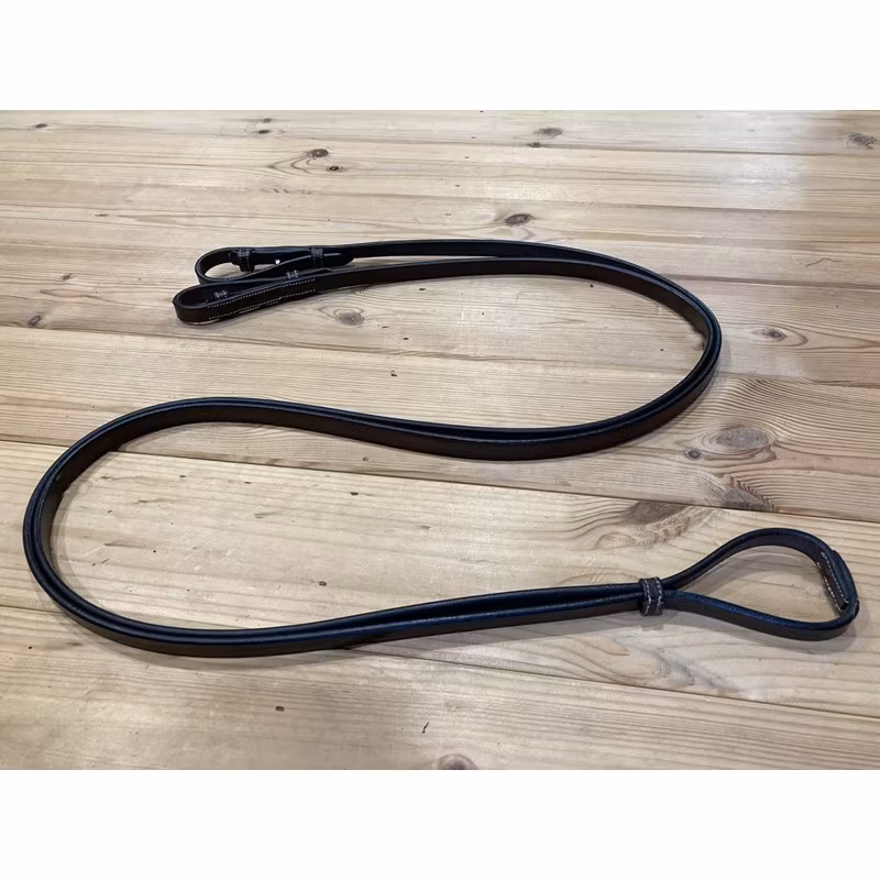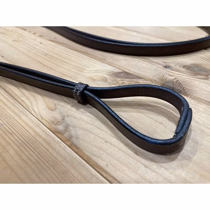 High-quality 1/2 (thinnest thickness) Jump'In flat leather reins. They are thinner than the traditional hunter reins (available HERE). They can be one of the two required pairs forming a double bridle but can also be used with a simple bridle.