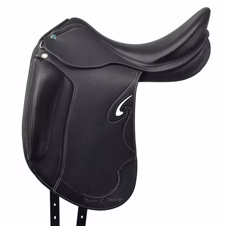 Ullstoppad dressyrsadel med monoflap som ger en fantastisk kontakt med hästen.