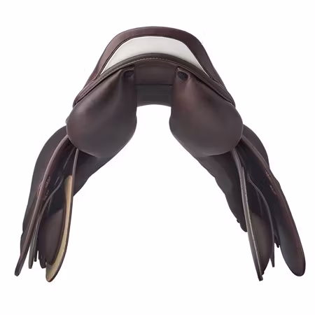 Ett lite flatare säte än de flesta ponny-hoppsadlar, för att uppmuntra barnen att hitta sin egen balans.