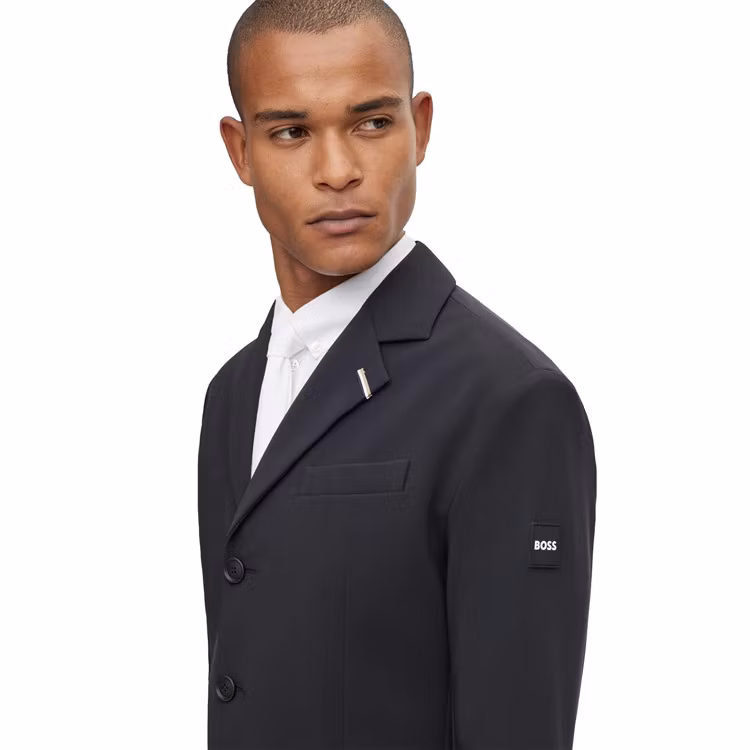 En airbag-kompatibel tävlingskavaj. Kavajen har en slim fit-passform i superelastiskt material för total rörelsefrihet och är försedd med Boss signaturdetaljer, bland annat en kontrasterande logotyp på vänster ärm. Fickor och en dubbel slits bak denna kavaj med en elegant finish.