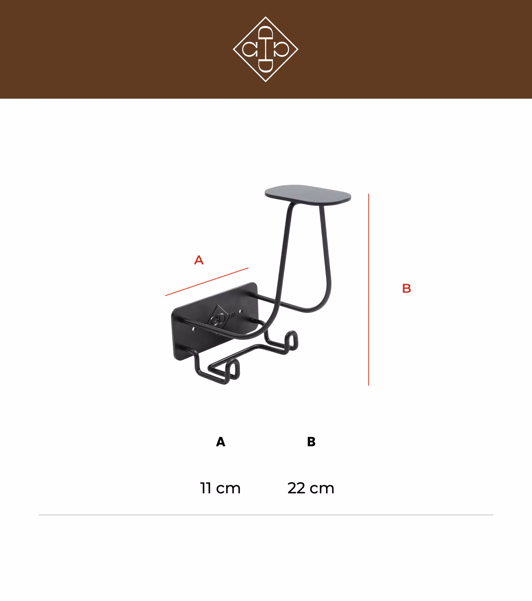 Keep your helmet in pristine condition with this sturdy and stylish Helmet Holder. Perfect for any helmet owner looking to combine functionality with elegance. Easy to place anywhere thanks to screw holes, It Is also compact and doesn't rust. It also features hooks to hang your gloves or other accessories. It Is a must-have to keep your helmet in excellent condition while also maintaining a hygienic environment by allowing the inside to dry quickly.