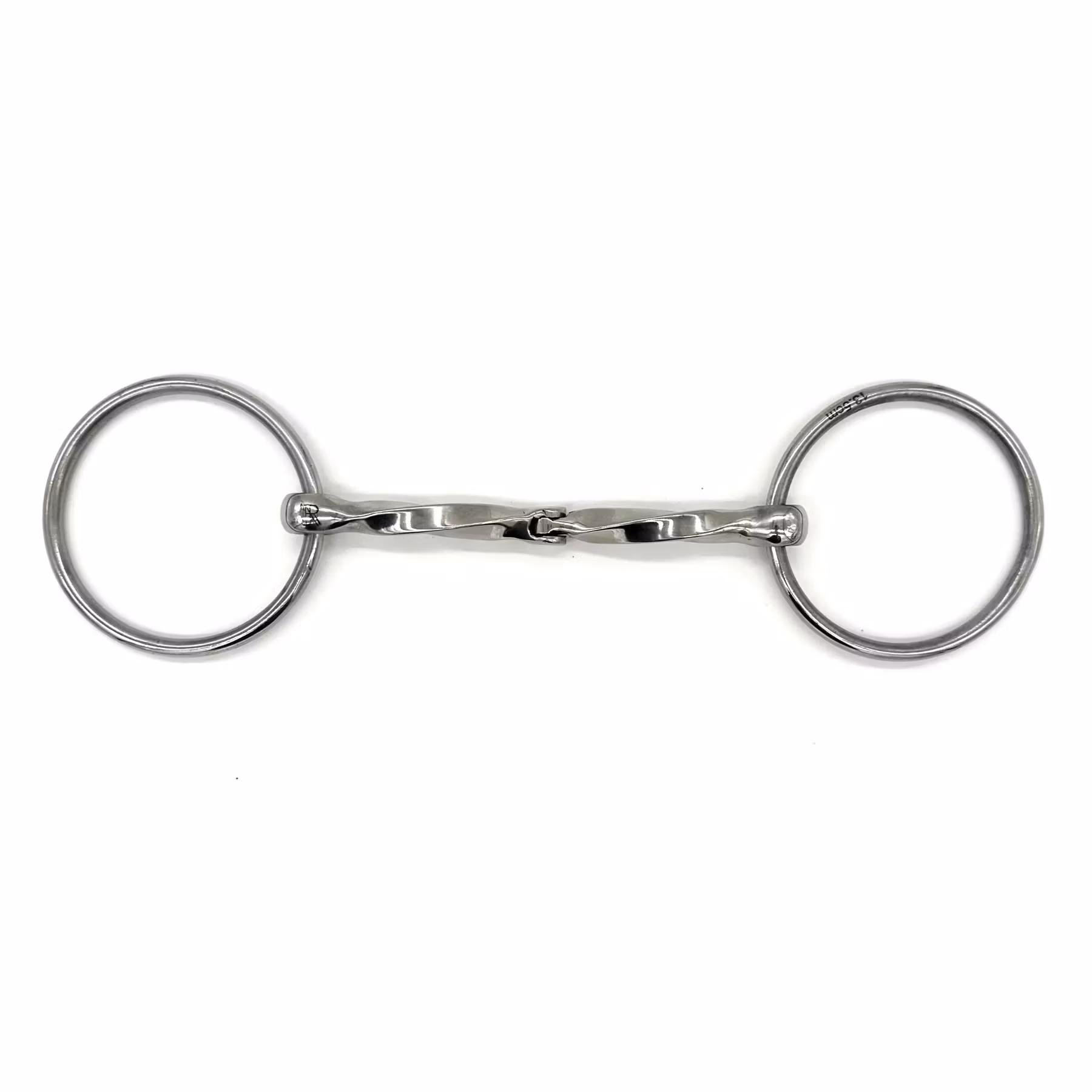 Upptäck den överlägsna kontrollen och rörligheten hos vår Twisted Hinge Loose Ring Bit. Till skillnad från traditionella ledbett erbjuder den innovativa gångjärnsmekanismen i detta bett förbättrad rörlighet och lyhördhet. Gångjärnet möjliggör oberoende rörelse av de två munstycketsektionerna, vilket ger tydligare och mer exakta signaler till din häst. Jämfört med ett skarvat bett minskar gångjärnet nötknäppareffekten och minimerar risken för att klämma tungan eller kinderna. Detta bett är lämpligt för hästar med låg gom. Det vridna munstycket ger en extra kontrollnivå, vilket gör det till ett utmärkt val för hästar som tenderar att vara starka.
