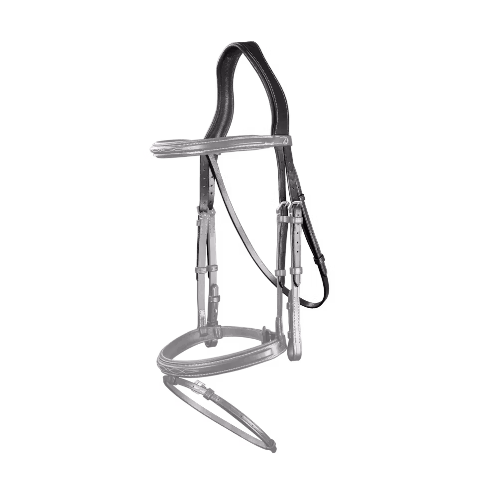 Smidig S-formad huvudstycke – den senaste Dy'on-innovationen för US Collection-tränsen. Detta S-formade huvudstycke är en förbättring jämfört med den modell du brukade känna. Skillnaden? S-formen har framhävts och pannbandet sitter lägre ner på huvudstycket för att inte krama om basen av örat – en av de känsliga fläckarna på din hästs huvud. Att accentuera S-formen gör det också möjligt att se konturerna av basen av örat utan att utöva tryck på den.gar.